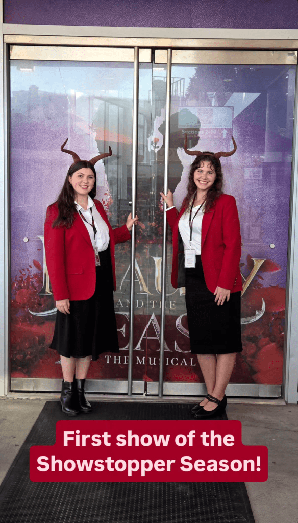 My first shift was opening night of DPAC for this season, with the first show being Beauty and the Beast. I was assigned to the front doors, and it was so fun. Greeting people in my red blazer and Beast horns (we usually wear black top hats) was such a wonderful experience.